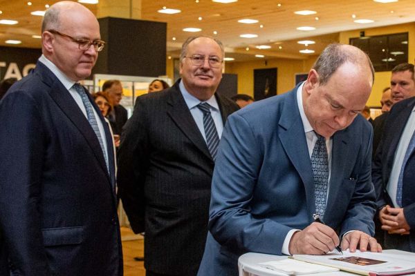 Patrick Maselis signe le Livre d'or du Mérite philatélique européen (à dr. Alessandro Agostosi, dépositaire du Livre d'or).
